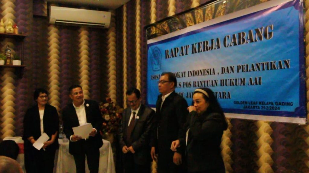 Dr. Palmer Situmorang, S.H., M.H. yang merupakan Ketua Umum DPP AAI ON Pada Jumat, (01/03/2024) Sore melantik Pengurus Posbakum DPC AII ON Jakarta Utara,yang dilaksanakan bertempat di Restoran Golden Leaf, Kelapa Gading, Jakarta Utara.