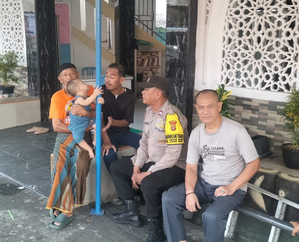 Jakarta Pusat – Patroli Dialogis dan Sambang Wilayah Bhabinkamtibmas Kelurahan Johar Baru Aiptu Sunarto di saat melaksanakan patroli menyempatkan diri sambang dialogis dengan warga di Masjid Baitul Karim jalan Johar Baru IV RT 16 RW 08 Kelurahan Johar Baru, Kecamatan Johar Baru Jakarta Pusat. Minggu (16/6/2024)
