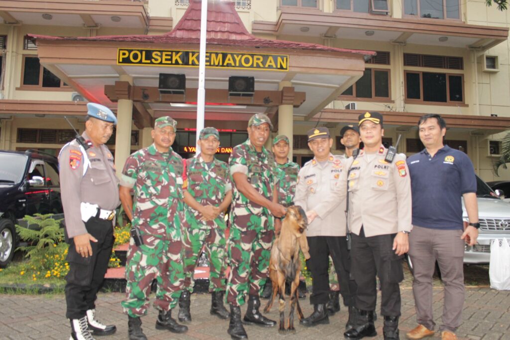 Jakarta Pusat – Polsek Kemayoran yang dipimpin oleh Kapolsek Kemayoran Kompol. Arnold J. Simanjuntak, S.E.,S.I.K.,M.H memberikan hewan qurban kepada Koramil Kemayoran yang diterima oleh Wadanramil Kemayoran Kapten Inf. S. Banik di Halaman Mako Polsek Kemayoran, Jakarta Pusat. Minggu (16/6/2024)