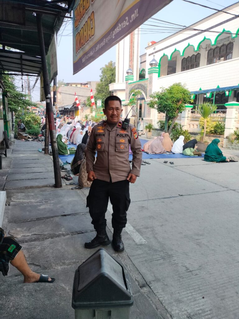 Jakarta Pusat – Kapolsubsektor Bendungan Jago IPDA Didik Purwanto malakukan Pengamanan Sholat Idul Adha 1445 H di Masjid Jamiul Huda Kelurahan Serdang, Jakarta Pusat. Senin (17/6/2024)