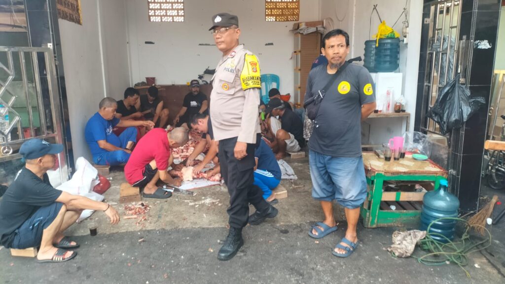 Selanjutnya Aiptu Sunanto selain melakukan kunjungan ia juga menghimbau kepada panitia qurban yang sedang memotong daging qurban untuk dikemasi kemudian di salurkan kepada warga yang membutuhkan supaya pada saat pembagian hewan qurban jangan sampai berdesak-desakan dan menimbulkan keramaian agar utamakan yang sudah memegang kupon dan pembagian tepat sasaran guna menjaga keamanan dan ketertiban.