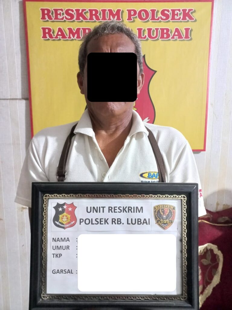 Tersangka yang berhasil ditangkap berinisial AU (58), warga Dusun I, Desa Kota Baru, Kecamatan Lubai, Kabupaten Muara Enim. Jumat, (14/6/2024).