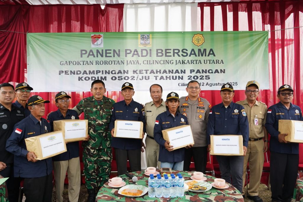 Jakarta Utara, Indonesia-Adijaya.my.id 12 Agustus 2025 – Kodim 0502/Jakarta Utara melaksanakan kegiatan Panen Padi Bersama Gapoktan Rorotan Jaya sebagai bagian dari program Pendampingan Ketahanan Pangan Tahun Anggaran 2025. Kegiatan berlangsung di lahan sawah Poktan Bangkit Bersama, Jl. Sungai Kendal RT 001/08, Kelurahan Rorotan, Kecamatan Cilincing, dan dihadiri sekitar 105 orang dari unsur TNI, pemerintah daerah, kepolisian, serta masyarakat.